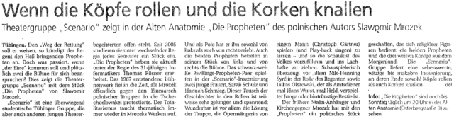 Die Theatergruppe Scenario spielte vom 18. bis 22. Januar 2012 Die Propheten von Sławomir Mrożek.