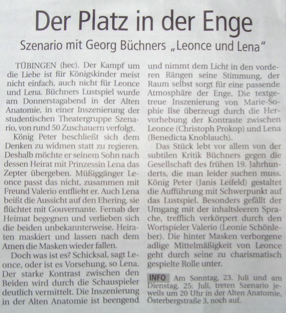 Prinz Leonce ist gelangweilt – vom Leben am Hof, von seinen Spaßmachern, von sich selbst. Als sein egozentrischer Vater beschließt, ihn zu verheiraten und ihm die Staatsgeschäfte zu übergeben, versucht er seiner Bestimmung zu fliehen.